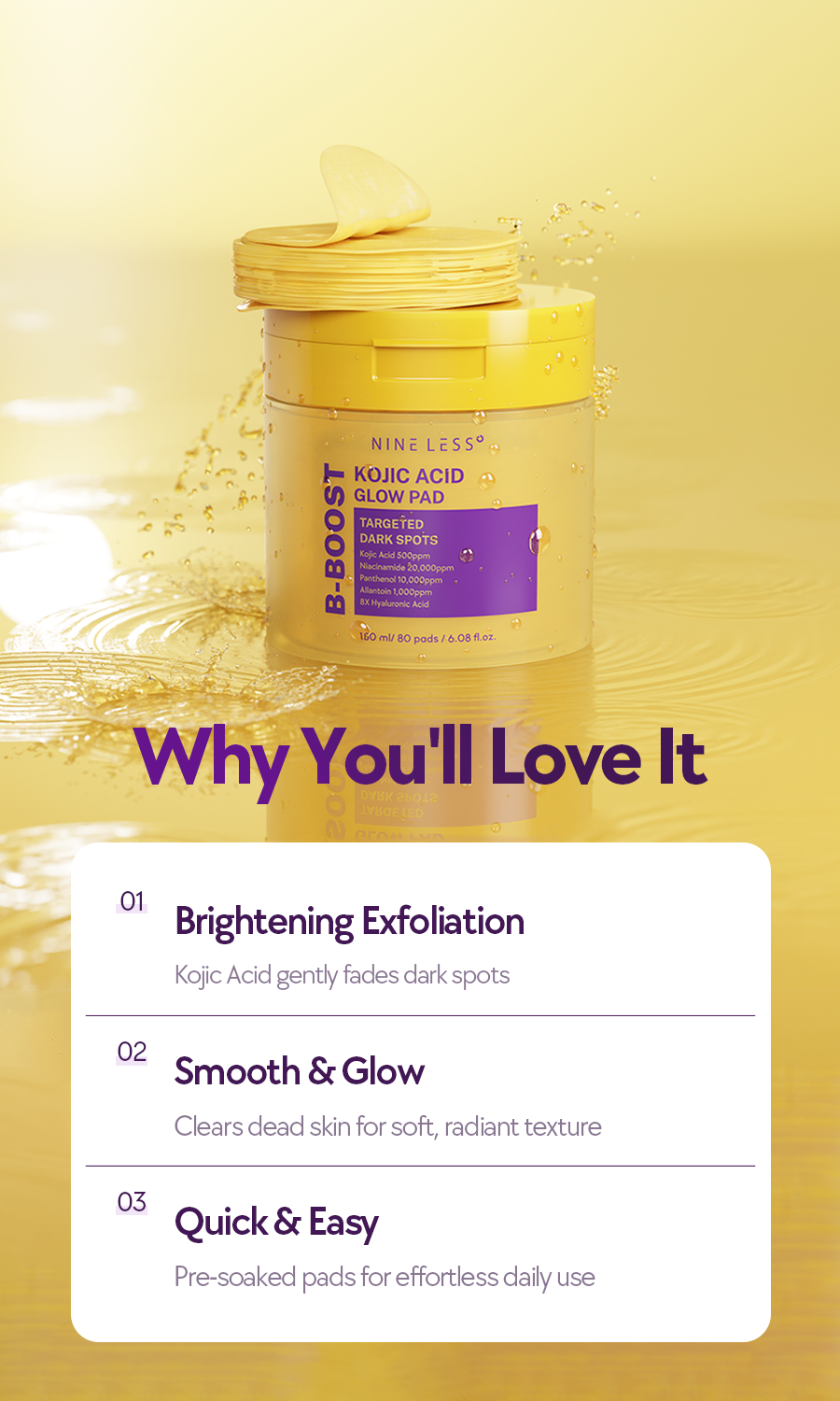 • Kojic Acid to help fade discoloration and brighten skin tone