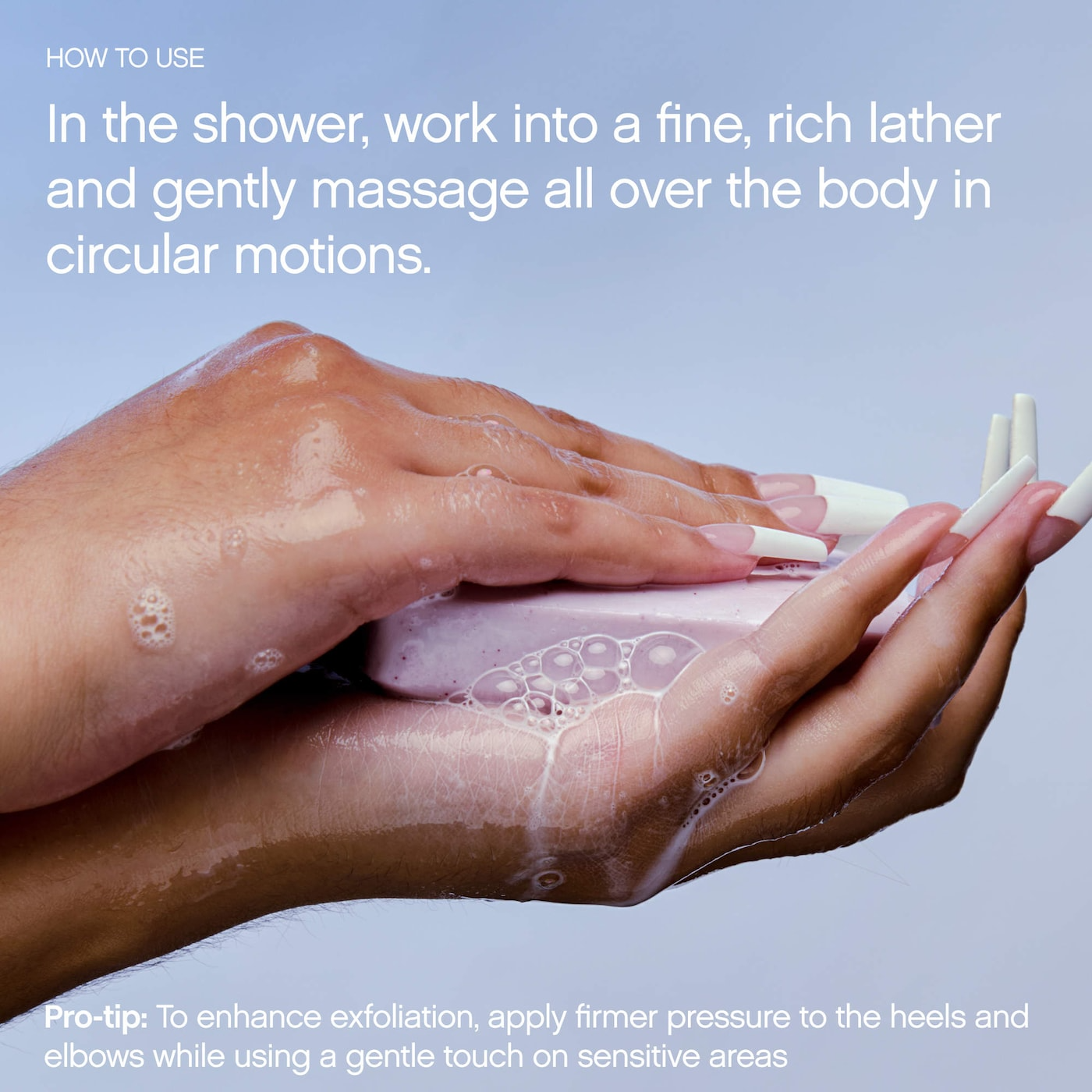 For body use only. Creates a rich lather that rinses clean and leaves skin comfortable. Pair with Slather Body Serum for added smoothing.
